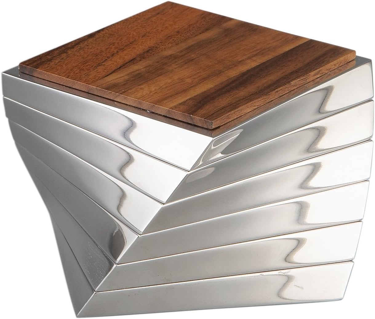 nambe Twist Coaster 6-Piece Set | Wooden Drinks Coasters for Tabletop Protection | Made of Acacia Wood and Metal Alloy | Unique Sculptural Design for Coffee Table or Bar Décor | 4.25 Inches